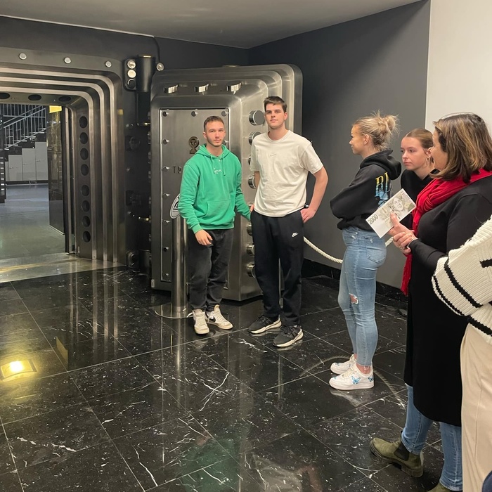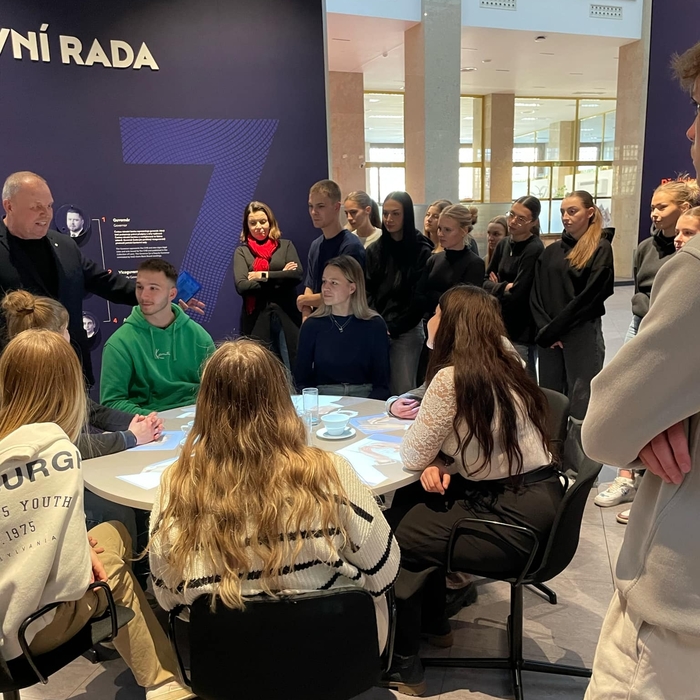 V odpoledních hodinách studenti ještě navštívili Českou národní banku, kde proběhla komentovaná prohlídka Lidé a peníze.
