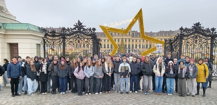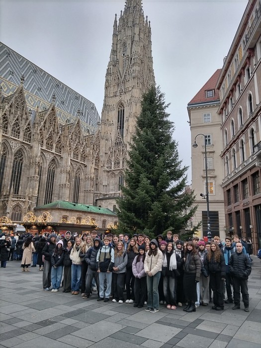 Dne 2. prosince 2025 se skupina 44 žáků tříd 2.B, 2.F a 3.B, kteří si zvolili jako druhý jazyk němčinu, vydala společně s pedagogickým doprovodem na jednodenní poznávací zájezd do Vídně.
