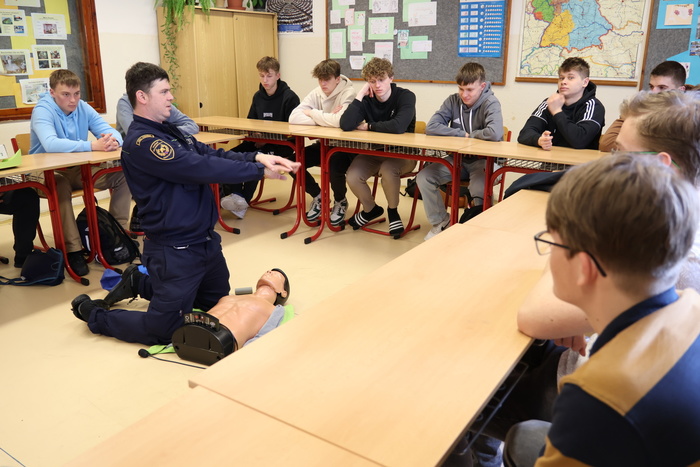 Potom jsme jednotlivé třídy rozdělili na půlky a každá část se postupně setkala s těmi, kteří jsou při nebezpečném chování důležití.