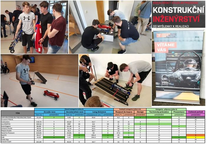 Naši studenti ze 3.A oboru Strojírenství absolvovali závody vlastnoručně vyrobených autíček poháněných tlakovým vzduchem. Do soutěže se přihlásilo více než 30 týmů, z nichž se do finále kvalifikovalo týmů 12. Tým našich studentů pod názvem Carbusters ve složení Filip Křesťan, Lukáš Görner a Jan Uttendorfský skončili celkově na velmi hezkém šestém resp. sedmém místě. Úkolem bylo přeměnit energii stlačeného vzduchu na energii mechanickou pro pohon modelu vozidla. Při vývoji používali znalosti z technických předmětů, které studují na naší škole, především modelování v 3D CAD, následný 3D tisk jednotlivých částí, pneumatické rozvody, převody, mechanismy apod. Vzhledem k dosaženým výsledkům ze soutěže jim je prominuta přijímací zkouška na VUT FSI pro příští rok. Další info na VUT uspořádalo pro středoškoláky závod modelů aut na stlačený vzduch, vítěze rovnou přijalo ke studiu - Novinky a FSI VUT v Brně (vutbr.cz) a Pravidla soutěže PneuRacer (vutbr.cz). Naší školu v této soutěži také reprezentovali v rámci týmu „SHM Krucemburk Pneuracing team“ – student z pracoviště Strojírenská – David Rykr a absolvent z roku 2023 – Jan Pavlíček, kdy tento tým získal celkově 2. místo.