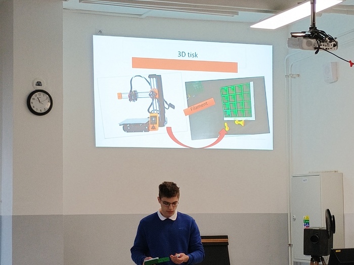 Ve čtvrtek 13. 3. 2025 v rámci předmětu ZPR představili ve školním kole SOČ maturanti ze 4. E své závěrečné práce. Generálka na definitivní předávání výsledků 16. 4. a na obhajoby, které proběhnou 16. 5. 2025, byla úspěšná. Hlavní cíl, aby si každý student vyzkoušel prezentování před větším publikem s důrazem na srozumitelnost a přesvědčivost projevu, byl splněn. Zároveň také všichni zjistili, kde je potřeba ještě něco vylepšit a doplnit. Tak ať se dílo podaří.