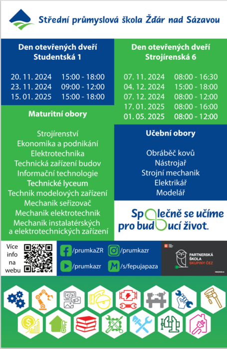 Nestihli jste? Nevadí! Rádi vás uvidíme na Dnech otevřených dveří nebo na Festivalu vzdělávání. Tak se za námi stavte!