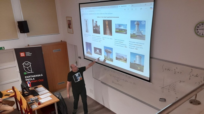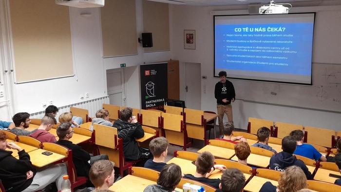 Z jeho slov bylo zřejmé, že matematika je vidět v mnoha oblastech, které by mohly naše žáky zajímat. Její znalost ale nespočívá v tom, že se něco naučím zpaměti. Matematiku je potřeba vnímat jako logickou strukturu, pochopit její principy, procvičit algoritmy a pak si zcela zaslouženě užít její aplikace. Na konci přednášky se našim žákům představil také studijní ambasador Ondřej Petruška, který měl pro ně nachystanou prezentaci studijních programů.