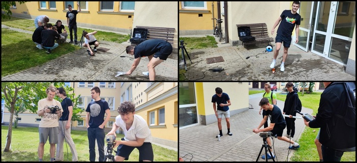 se nazývá též speedcam a je určena k natáčení velmi rychlých dějů, např. crashtestů. V principu se jedná o filmování, jen rychlostní kamery dokáží natočit třeba 10 000 snímků za sekundu (10 000 fps). To dokáže i naše kamera od firmy Olympus, ale velmi vzrůstají nároky na osvětlení scény. Protože nejlepším zdrojem světla je Slunce, počkali jsme se studenty 3. C na pěkný sluneční den a laboratorní cvičení z automatizace uskutečnili venku. Stačila nám záznamová rychlost 1 000 fps. Filmový štáb tvořil režisér, klapka, kameraman s asistentem, herci a osvětlovači, držící bílou stěnu. Všichni jsme také pochopili, proč skuteční filmaři jeden záběr mnohokrát opakují. Zde můžete shlédnout video. (Rudolf Voráček)