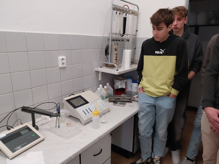 V pondělí 24. února navštívila třída 1.C Vodárenskou akciovou společnost – divizi ve Žďáře nad Sázavou, která sídlí v sousedství naší školy. Teoretické znalosti o výskytu, přepravě a hlavně úpravě pitné vody a čištění odpadní vody si studenti rozšířili o spoustu nových poznatků. V laboratoři studenti pozorovali základní chemické postupy jako titraci, destilaci či práci se spektroskopem.