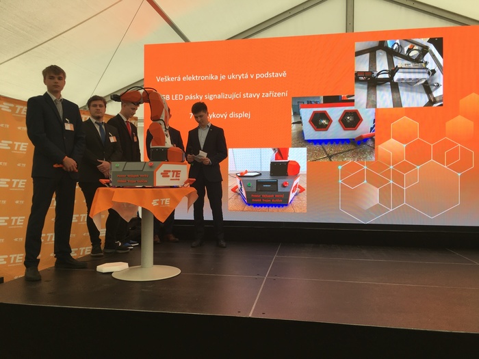 Do finálového kola postoupily dva týmy a museli předvést funkční robotické rameno s definovanými požadavky na rozměry, váhu, rychlost skenování, výrobní cenu a také s originálním designem. Našemu týmu se s nasazením maximálního úsilí podařilo postavit robotické rameno s originálním designem a intuitivním ovládáním, které ve finále porazilo druhý tým a zaslouženě náš tým vyhrál první místo. Tým přijeli podpořit spolužáci a vytvořit skvělou atmosféru při předávání cen a vůbec celého soutěžního dne. Naše vítězné rameno slouží jako propagační pomůcka pro základní a střední školy a dny otevřených dveří pod záštitou firmy TE connectivity.