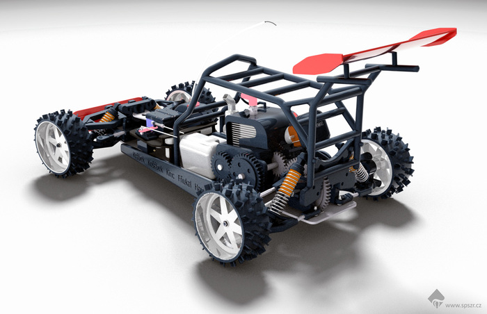 Mechatronická 3D studie RC buggy a její stavba, team řešitelů, jeden z prvních komplexnějších projektů vytvořený na naší škole pomocí parametrického navrhování před více jak desítkou let.