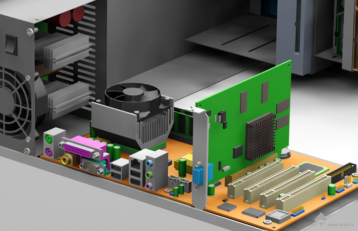PLM kontrukční řešení osobního počítače a FEM analýza chlazení skříně, studenti Kratochvíl, Bayer, Hanych, závěrečná práce CAD/FEM technologií na VOŠ.