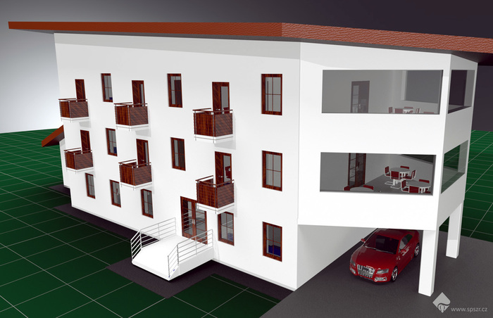 Úvod > O škole > Studentské projekty > Projekt hotelu s využitím BIM software a vizualizace, Sáblík Jiří, 3.DE
